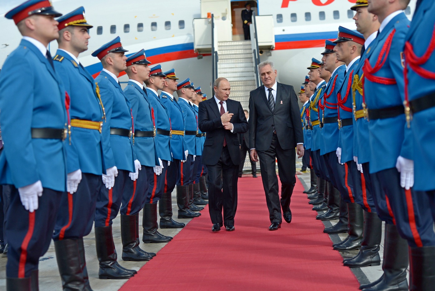 16 октября Владимир Путин посетил с официальным визитом Белград, где присутствовал на торжествах по случаю 70-летия освобождения города от немецко-фашистских захватчиков. Визит вызвал негативную реакцию стран Запада, которые забеспокоились, как бы Россия не «увела у них из под носа» Сербию, уже давно задекларировавшую курс на евроинтеграцию. Итоги поездки этих опасений не развеяли, хотя и рвать связи с Европой Белград не стал. Но одно только воодушевление, с которым сербы встречали российского лидера, должно было испортить настроение западным политикам, которые твердят о «международной изоляции» России. В ходе визита Владимир Путин посетил парад, кстати, первый военный парад в столице Сербии почт